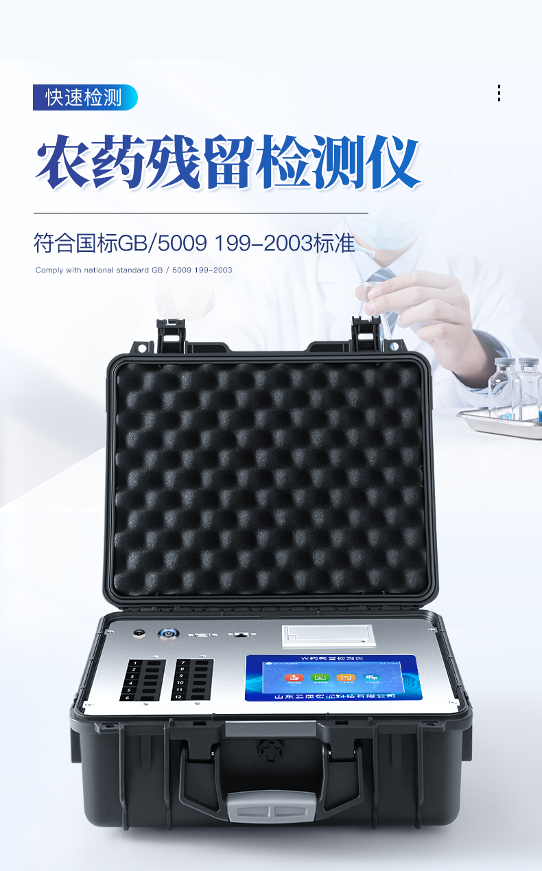 檢測標(biāo)準(zhǔn):依據(jù)國家標(biāo)準(zhǔn)方法(GB/T5009.199-2003)以及世界衛(wèi)生組織WHO、世界糧農(nóng)組織FAO殘留農(nóng)藥檢測標(biāo)準(zhǔn)、世界環(huán)境保護局EPA參照攝入量等要求來設(shè)計。采用酶抑制率比色法對水果、蔬菜等農(nóng)林產(chǎn)品中有機磷和氨基甲酸酯類農(nóng)藥含量進行快速準(zhǔn)確的檢測,乙酰膽堿酯酶和丁酰膽堿酯酶試劑均可以使用,符合國家標(biāo)準(zhǔn)和農(nóng)業(yè)部標(biāo)準(zhǔn)的要求。