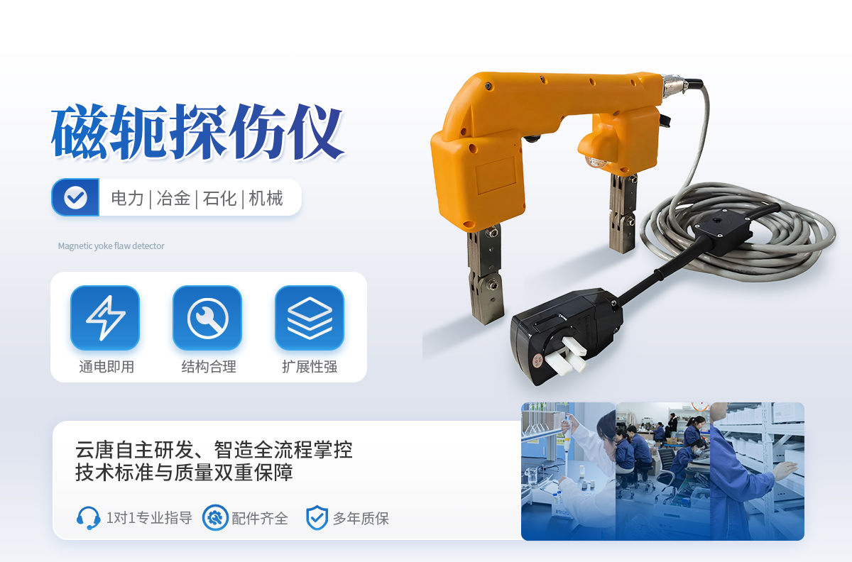 YT-CTS-N型電磁軛磁粉探傷儀,無主機設計,采用逆變交流鋰電池供電,無需外接電源即可產生交流磁場。核心部分采用單片機控制,輸出**、穩定。可根據工件的厚度自動調整輸出電流,減少了開環電流大和發熱的問題 。輸出功率強勁,檢測靈敏度高,操作方便,結構緊湊、布局合理、體積小巧、重量輕、攜帶方便等特點。