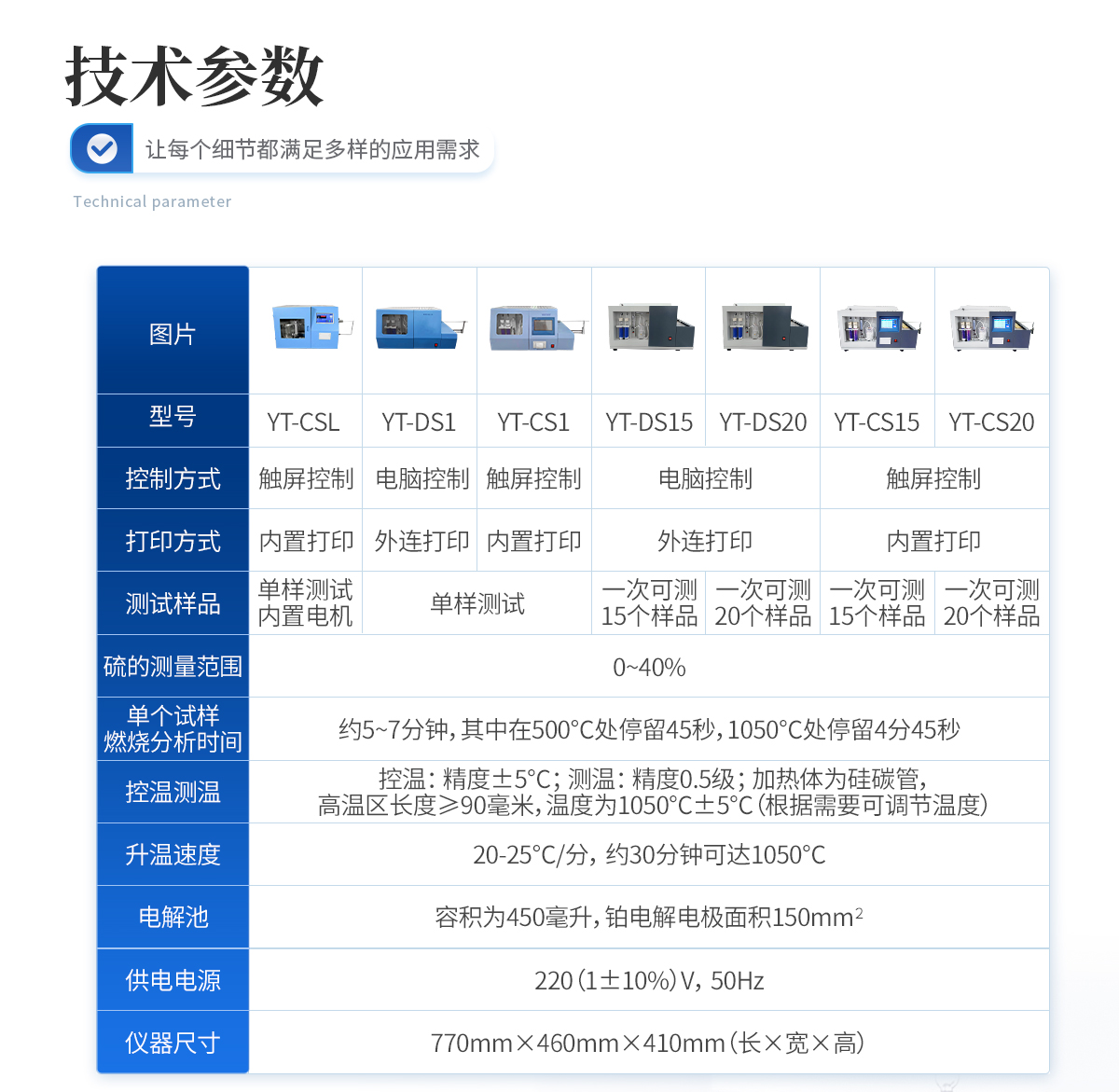 | 1.硫的測量范圍:0—40%. | 2.單個試樣燃燒分析時間:約5--7分鐘,其中在500℃處停留45秒,1050℃處停留4分45秒。 | 3.控溫:精度±5℃。測溫:精度0.5級;加熱體為硅碳管,高溫區長度≥90毫米,溫度為1050℃±5℃(根據需要可調節溫度) | 4、 密度:如下表規定: St,% 重復性St,ad,% 再現型St,d,%<1 4="" 0.05="" 0.10="" 0.20="">4 0.20 0.30 | 5.升溫速度:20--25℃/分,約30分鐘可達1050℃。 | 6.電解池:容積為450毫升,鉑電解電極面積150mm2 。 | 7.供電電源:220(1±10%)V,50Hz. | 8.儀器尺寸(mm) 長×寬×高(770×460×410) |