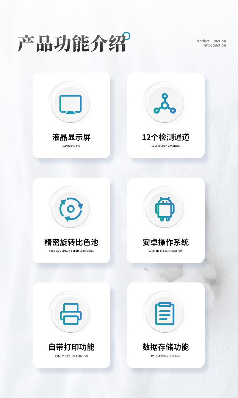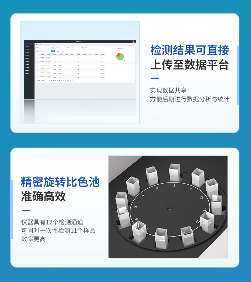 ④ 儀器采用精密旋轉(zhuǎn)比色池設(shè)計(jì),使用同光源校準(zhǔn)精度,檢測(cè)結(jié)果更為準(zhǔn)確**。