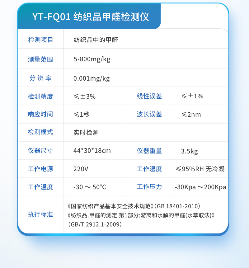 紡織品甲醛檢測(cè)儀 YT-FQ01 技術(shù)參數(shù):