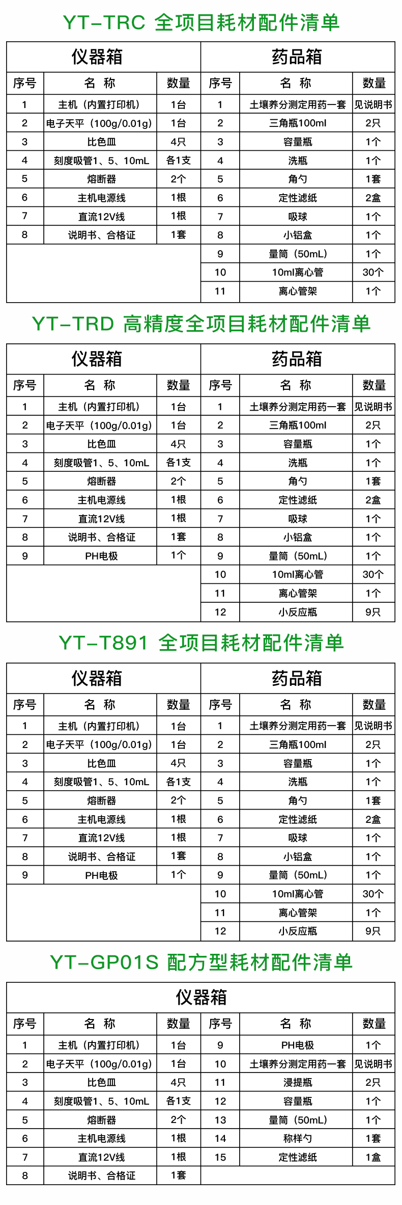 01 | 主機(內置打印機) | 1臺 | 01 | 肥料養分測定用藥 | 1套/200次 |