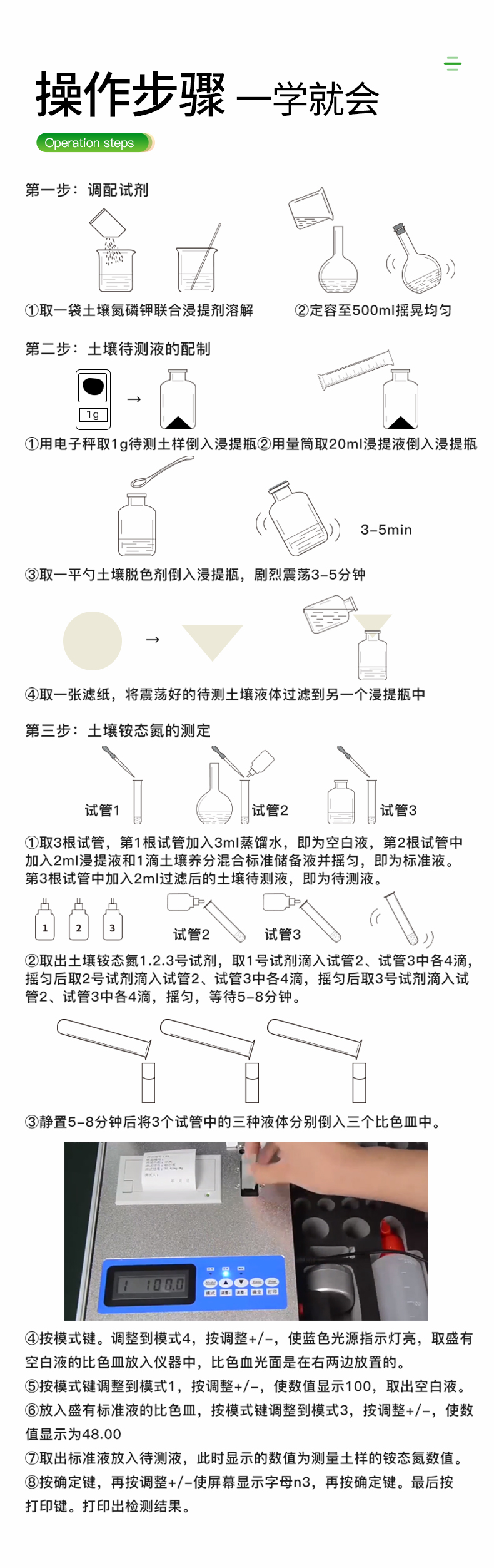 11.測試速度:測一個肥料樣(N、P、K)≤50分鐘(含前處理時間,不需用戶提供任何附件)