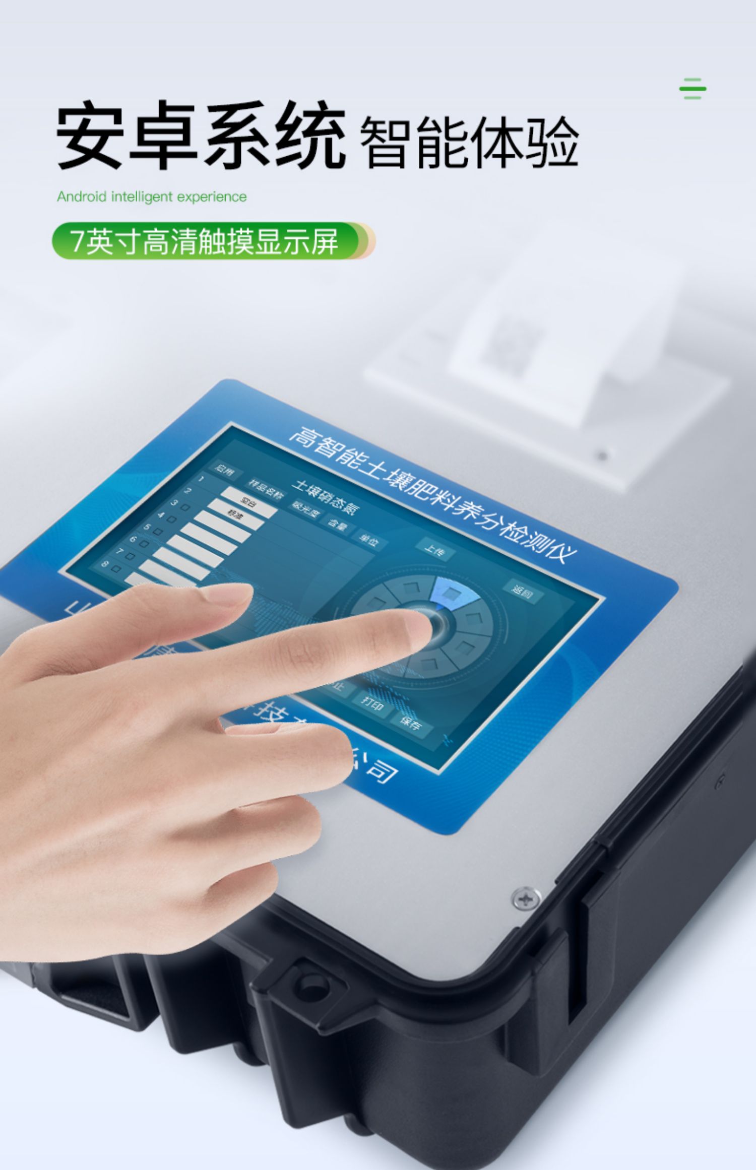 | ★1、安卓智能操作系統Android 7.1版本,主控芯片采用ARM Cortex-A7,RK3288/4核處理器,主頻1.88Ghz,運轉速度更快速,穩定性更強。 | ★2、可檢測各種土壤、肥料、作物、食品、水質、環境等共200多個測試項目,一機多用,功能齊全。 | ★3、測試速度更快!無需空白對照和標準校準,省卻以往繁瑣的操作步驟,一鍵式操作,直接讀取數據,**率,低消耗。 | ★4、采用精密旋轉比色池設計(**號:** 2018 2 1777724.7),光源一致性更加**,保證檢測精度。 | ★5、12個旋轉檢測通道,一次性可快速檢測12個樣品,極大提升檢測效率,降低檢測成本。 | ★6、采用高精度濾光片技術自主**分析方法(**號:** 2020 2 1763837.9),權威認證。 | ★7、具有自身保護功能,內置人臉識別攝像頭可掃臉登錄,也可設置用戶名和密碼,防止非工作人員操作查看實驗數據。 | ★8、檢測過程中內置校準功能,智能恒流穩壓,光強自動校準,確保檢測準確度,取得中國計量科學研究院的《校準證書》。 | ★9、內置傳感器航空接口,插拔方便,配備FDR傳感器、環境多要素傳感器。 | ★10、FDR傳感器為土壤三參數一體式,可同時測量土壤水分含量、土壤環境溫度、土壤電導率(鹽分)方便快捷。 | ★11、環境多要素傳感器為6要素一體式,可同時測量空氣溫度、空氣濕度、露點、大氣壓力、光照度、二氧化碳。 | ★12、儀器標配wifi無線上傳、4G聯網傳輸、GPRS無線遠傳,快速上傳數據。 | ★13、配有智慧云農業平臺,儀器連入無線網絡后,可將檢測數據可選擇性或批量無線上傳,方便用戶進行數據管理和長期分析。 | 14、儀器配同時具有USB接口、以太網接口,內置大容量內存,并可隨時用U盤拷貝數據。 | ★15、可用手機隨時登錄云平臺在線移動查看歷史數據 | ★16、內置作物專家施肥系統,可對百余種全國農業經濟作物、果樹等的目標產量計算推薦施肥量,依據施肥配方科學指導農業生產。測土配方施肥結果可打印,打印內容包含:作物種類、肥料種類、目標產量、需求總量、建議施肥方案。 | ★17、內置植物營養診斷標準圖譜,根據各農作物營養缺失的圖片,進行葉面對比,診斷豐缺。 | ★18、4波長專業測試冷光源(紅、藍、綠、橙),光源波長穩定,長時間連續工作光源無溫漂現象,壽命長達10萬小時級別,重現性好,準確度高。 | 19、比色池部分采用標準1cm比色皿,無機械位移及磨損,光路測試定位**,有效屏蔽外光干擾,保證檢測結果優于國標要求。 | ★20、儀器系統內帶有樣品前處理操作視頻,各種樣品檢測方法點擊視頻模塊即可觀看,檢測人員無需自學說明書,指導教學方便快速,方便新手快速操作。 | 21、內置新一代高速熱敏打印機(無需色帶),打印內容包含:檢測單位、檢測人員、檢測項目、通道號、吸光度、養分含量(mg/kg)、檢測時間、以及二維碼等信息 | ★22、高靈敏7寸真彩觸摸屏,采用更加**和人性化操作,高清晰高交互顯示,大程度降低傳統儀器的繁瑣操作和失誤,并取得多項《軟件著作權》。 | 23、內置時鐘功能,方便操作時間記錄,長期歷史追溯。 | 24、可設置多賬戶賬號密碼登錄,**UI交互界面,不同的用戶可自由添加編輯檢測信息,保存后可長期使用。 | 25、GPS功能:可在野外作業時記錄經緯度地點,滿足特殊用戶需求。 | 26、內置低電壓提示功能,可在檢測時明確電量,避免測試數據偏移,同時具有斷電保護功能,斷電自動保存數據,防止數據丟失。 | ★27、交直流兩用供電方式,內置大容量充電鋰電池,滿電狀態下可連續工作10余小時,同時可外接車載電源蓄電。 | ★28、儀器具有中英文切換功能,可滿足出口要求。 | 29、高強度PVC工程塑料手提箱設計,堅固耐用,便于攜帶。 |