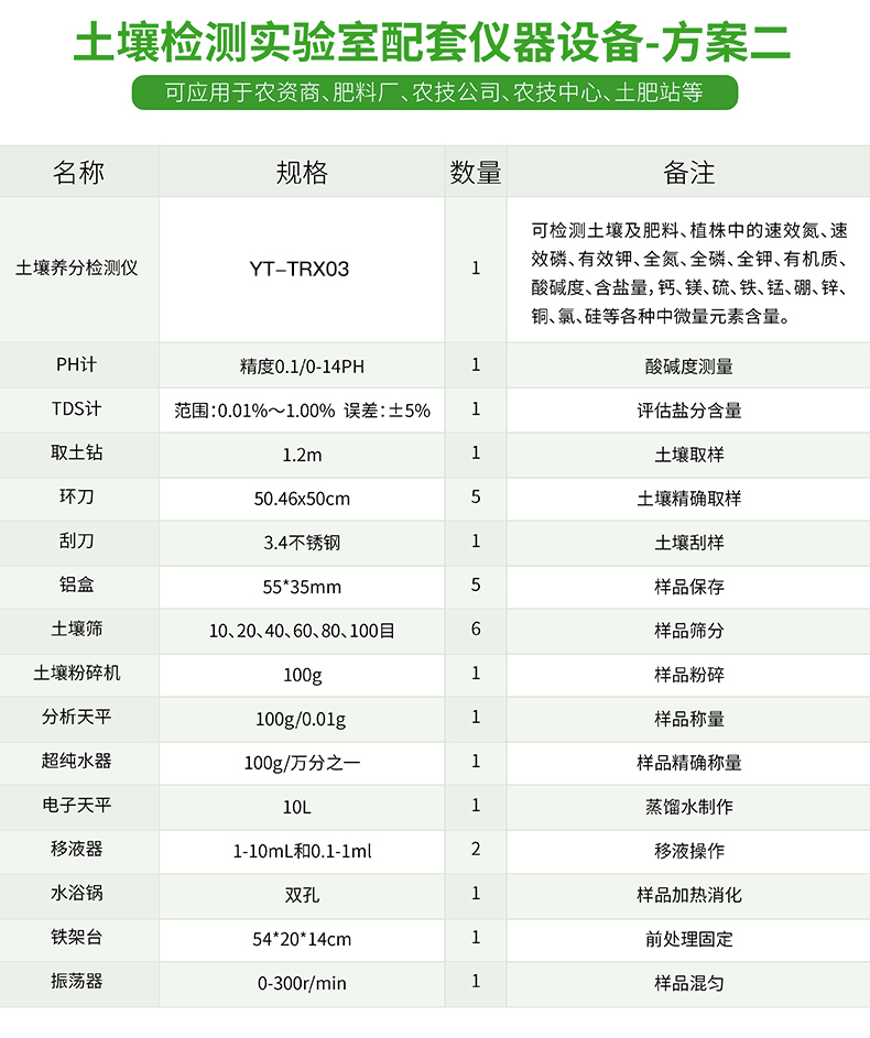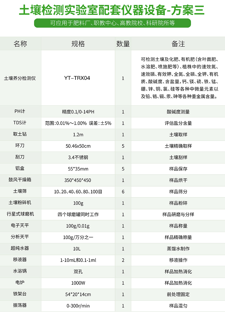 簡介:品牌:云唐? 型號:YT-GT80:一、土壤環境分析系統產品簡介:配套齊全:該儀器集藥、器、儀為一體,攜帶方便,相當于一個小型移動實驗室,無需用戶自配附件,亦可靈活野外流動測試。適于農業服務部門或農資經銷商、高教院校、科研院所、合作社、肥料廠商、大種植戶測土施肥和鑒別肥料真假及環保檢測應用