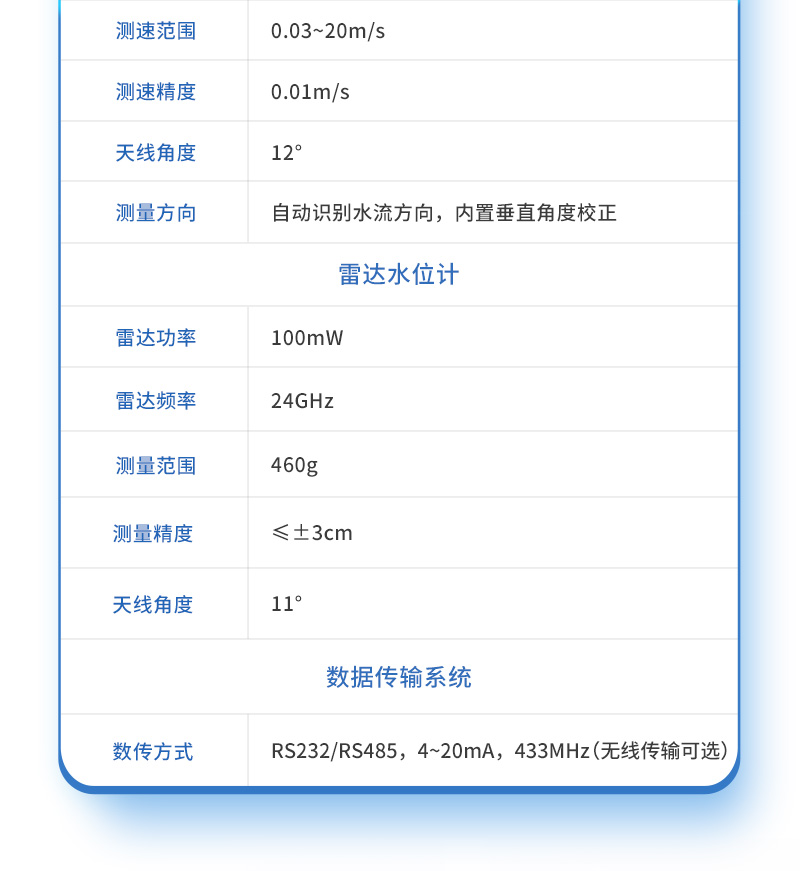 2. 適用于多種測量條件,可以輸出流速、水位、流量的測量數據;