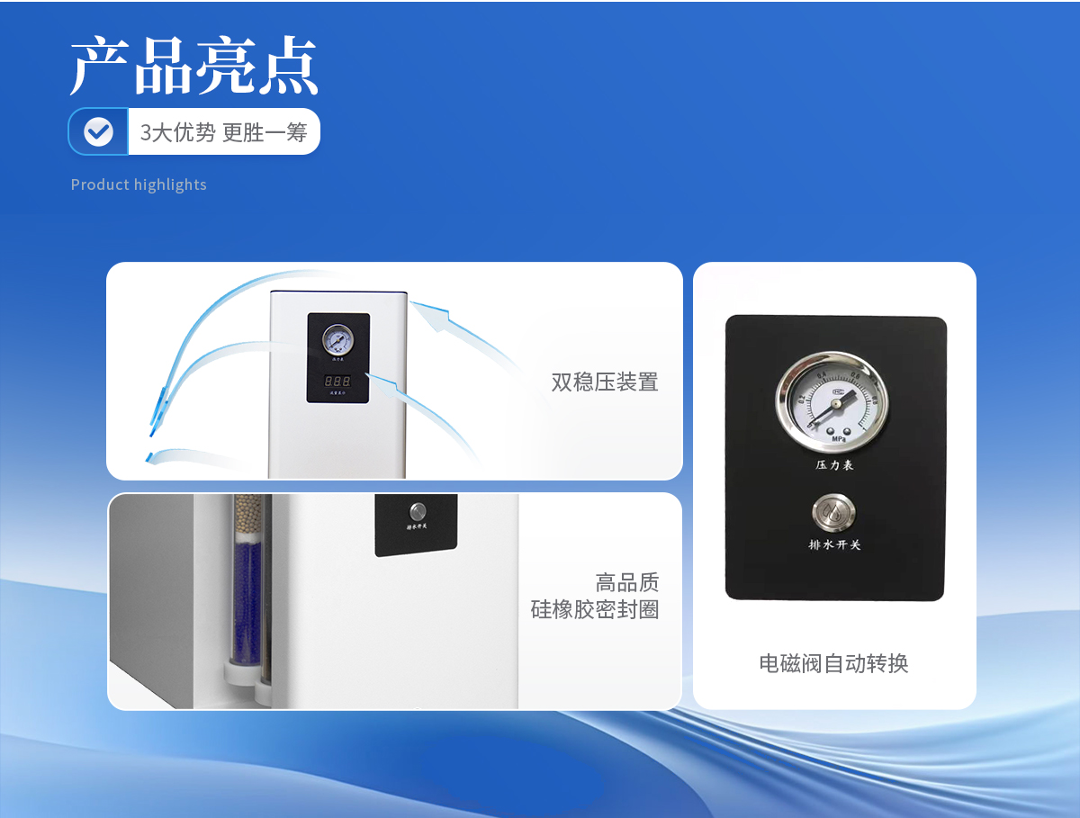 | 1、雙穩(wěn)壓裝置,確保高精度穩(wěn)壓條件下氣體流量的穩(wěn)定性。 | 2、電磁閥自動(dòng)轉(zhuǎn)換,徹底杜絕了電磁閥在自動(dòng)放水時(shí)產(chǎn)生的連續(xù)噪音,實(shí)現(xiàn)放水、轉(zhuǎn)換一體化。 | 3、儀器內(nèi)部采用硅橡膠圈,含硫量低有效提高氣體質(zhì)量,保證色譜基線穩(wěn)定。 | 4、體積小,雙支FV型亞克力過濾器,耐壓高,不會(huì)因工作環(huán)境及腐蝕氣體的影響,導(dǎo)致過濾管變形,開裂而產(chǎn)生漏氣現(xiàn)象,可持久使用,一勞永逸。 |