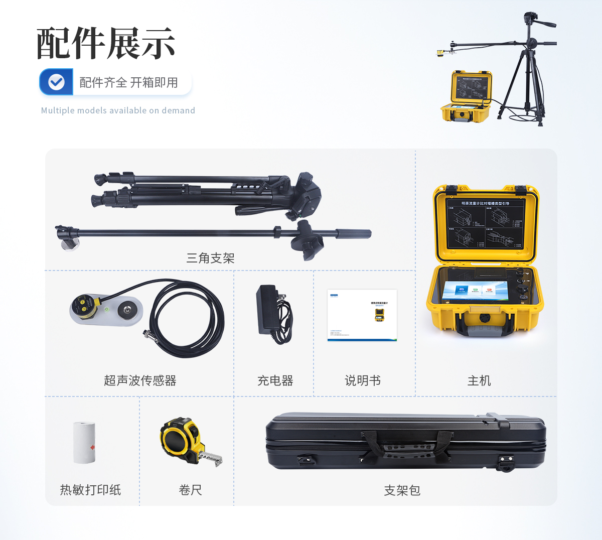 主機、傳感器探頭、三腳架、 防護(hù)包 、充電器、嵌入式打印機