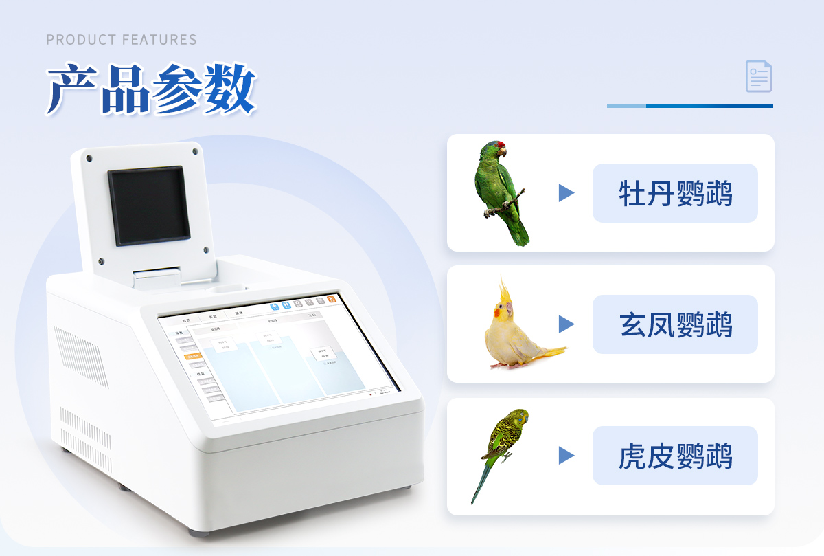 簡介:鸚鵡DNA鑒定儀是實(shí)時(shí)檢測(cè)反應(yīng)的儀器,主要由基因擴(kuò)增熱循環(huán)系統(tǒng)、熒光實(shí)時(shí)檢測(cè)系統(tǒng)、微電路控制系統(tǒng)、計(jì)算機(jī)及應(yīng)用軟件組成。