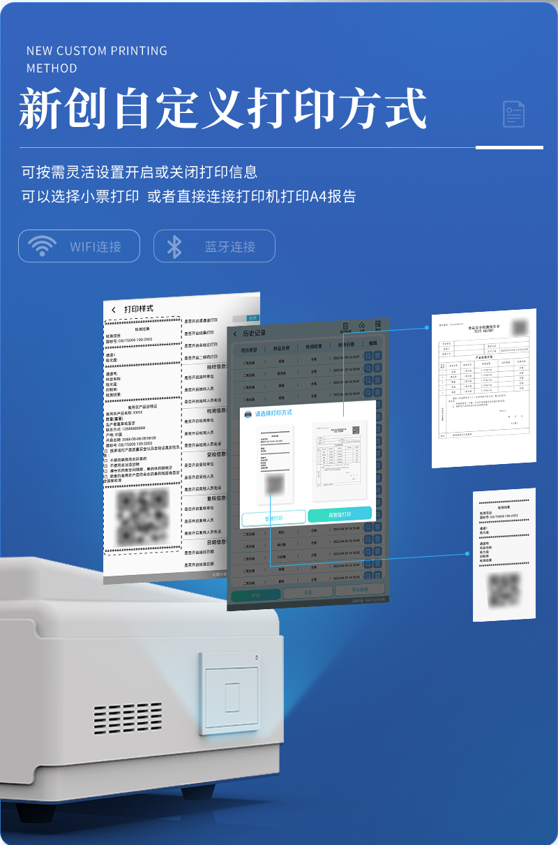 | 1、儀器采用臺式一體化系統檢測技術,將分光光度模塊、數字化管理模塊、無線通訊模塊高度集成于一體,支持檢測幾十種食品安全檢測項目,同時預留升級檢測方法。 | 2、儀器檢測模塊標準化、智能化,檢測項目可隨意自由組合。檢測箱體內置多個標準檢測單元,檢測模塊可以調整配置。 | 3、顯示屏幕:儀器采用7英寸液晶觸摸屏,搭配運行安卓智能操作系統,主控芯片采用ARM Cortex-A7,RK3288/4核處理器,主頻1.88Ghz,操作方便,性能更強。 | 4、檢測通道:≥12通道;采用精密旋轉比色池設計,使用同芯片同光源校準精度,解決不同光源之間的誤差值,更加準確**。 | 5、儀器光源:高精度進口四波長冷光源,每個通道均配置 410、520、590、630nm 波長光源,標配**的光路切換裝置,**光路切換功能可實現64波長,并且所有檢測項目可實現所有通道同時檢測。 | 6、通訊接口:配備無線通信模塊、可選配4G(APN)通訊模塊和藍牙傳輸,同時具有USB接口,可以多方式實現數據保存及數據傳輸。 | 7、存儲方式:支持U盤存儲,標準USB接口,免驅動安裝。檢測結果存儲容量20萬條以上,可生成Excel表格進行拷貝,并具有登錄保護功能。 | 8、智能化操作系統 | 8.1、操作系統:儀器可在同一檢測界面自動對應相關檢測通道,一次性選擇1-12個樣品名稱,無需退出界面,節省操作時間。并可以對每個通道屬性和樣品信息單獨進行編輯,例如送檢單位、人員,檢測人員等,打印時勾選打印顯示。 | 8.2、限量規判系統:具有限量查詢、添加物質合規判定系統。檢測出結果后,系統自動調用系統數據庫中相關國標進行比對判定,客觀顯示結果是否合格。 | 8.3、數據監管系統:同步對接監管平臺,數據可局域網和互聯網數據上傳,檢測結果可選擇直接傳至食品安全監管平臺。進行區域食品安全監管及大數據分析處理與數據統計,檢測區域食品安全長短期動態,達到食品安全問題預估、預警。 | 8.4、打印系統:內置全新打印機,可以打印:項目名稱,二維碼,抽樣信息、檢測信息,受檢信息、復核信息、抽樣日期、檢測日期等信息的打印。 | 9、供電模式:儀器交直流兩用,直流12V供電(標配),可連接車載電源,亦可選配6ah大容量充電鋰電池,電量可實時顯示,方便戶外流動測試。 | 10、儀器具有重新校準、鎖定、恢復出廠設置功能, | 11、外觀尺寸:415X310X150(mm) ,并可加配鋁合金手提箱 |