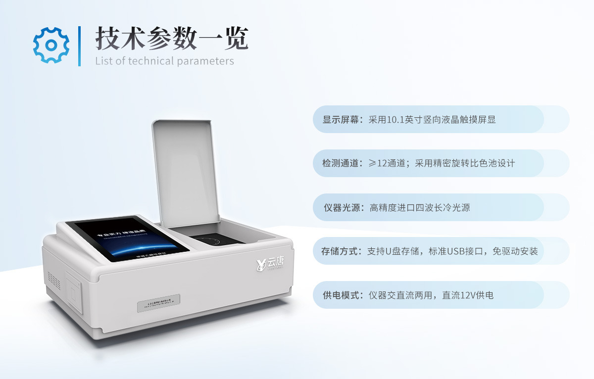 | 儀器采用臺式一體化系統(tǒng)檢測技術(shù),將分光光度模塊、新型農(nóng)殘檢測模塊、數(shù)字化管理模塊、無線通訊模塊高度集成于一體,支持檢測200種食品安全檢測項目,同時預(yù)留升級檢測方法。 | 儀器檢測模塊標(biāo)準(zhǔn)化、智能化,可隨意自由組合。檢測箱體內(nèi)置多個標(biāo)準(zhǔn)檢測單元,檢測模塊可以調(diào)整配置。 | 儀器采用全新安卓智能系統(tǒng),主控芯片采用 ARM Cortex-A7,RK3288/4核處理器,10.1寸高清液晶觸摸豎屏,更加**的UI交互界面,運轉(zhuǎn)快捷;儀器配備無線通信模塊: 4G(APN)通訊模塊、Wifi模塊,藍(lán)牙傳輸,同時具有雙USB接口以及RJ45接口能以多種方式實現(xiàn)數(shù)據(jù)保存和數(shù)據(jù)傳輸功能。 | 創(chuàng)新檢測模式: | ★檢測通道:≥12通道;采用精密旋轉(zhuǎn)比色池設(shè)計,使用同芯片同光源校準(zhǔn)精度,解決不同光源之間的誤差值。1-12通道間誤差0.1%。(**號:**202022821055.2) | ★儀器具有自動識別比色皿檢測功能,即:將樣品比色皿放入儀器后,點擊樣品檢測,儀器自動識別比色皿進(jìn)行通道檢測。 | 進(jìn)口高精光源: | 高精度進(jìn)口四波長冷光源,通道配置 410、520、590、630nm 波長光源,一個光源芯片驅(qū)動一個光源,誤差極小,每臺設(shè)備單獨**校準(zhǔn)光源,**比對,同時參照四種不同波段光源全方位覆蓋市面上99%的農(nóng)殘食品項目檢測。 | 智能化操作系統(tǒng): | 便捷操作系統(tǒng):設(shè)備檢測時可在同一檢測界面自動對應(yīng)相關(guān)檢測通道一次性選擇1-12個樣品名稱,無須退出界面,節(jié)省操作時間。 | 數(shù)據(jù)集成系統(tǒng):設(shè)備首頁自動統(tǒng)計檢測數(shù)據(jù)包含:周檢測數(shù)據(jù)、月檢測數(shù)據(jù),全部檢測總數(shù)量,均包含檢測總數(shù),合格數(shù),不合格數(shù),以及相關(guān)柱形分析圖,對各項檢測數(shù)據(jù)清晰掌握,無需電腦查詢,更加快捷直觀。 | 項目預(yù)設(shè)系統(tǒng):支持添加單個及多個相同或不相同的任務(wù)預(yù)設(shè),一鍵快速調(diào)取,每一個任務(wù)分別可以設(shè)置不同的樣品、批次、編號、來源、備注、抽樣信息、檢測信息、受檢信息、復(fù)核信息等更多信息。無縫鏈接平臺和APP實時查看下發(fā)任務(wù)。 | 數(shù)據(jù)監(jiān)管系統(tǒng):同步對接監(jiān)管平臺,數(shù)據(jù)可局域網(wǎng)和互聯(lián)網(wǎng)數(shù)據(jù)上傳,檢測結(jié)果可選擇直接傳至食品安全監(jiān)管平臺。集成OSS輸出存儲服務(wù)、區(qū)分設(shè)備定向管理應(yīng)用,進(jìn)行區(qū)域食品安全監(jiān)管及大數(shù)據(jù)分析處理與數(shù)據(jù)統(tǒng)計,檢測區(qū)域食品安全長短期動態(tài),達(dá)到食品安全問題預(yù)估、預(yù)警。 | 自定義打印系統(tǒng):內(nèi)置全新打印系統(tǒng),新創(chuàng)自定義打印方式,可按需靈活設(shè)置開啟或關(guān)閉:產(chǎn)品合格證(國家農(nóng)業(yè)部標(biāo)準(zhǔn)要求),二維碼,抽樣信息、檢測信息,受檢信息、復(fù)核信息、抽樣日期、檢測日期等信息的打印。 | 系統(tǒng)遠(yuǎn)程更新功能:可定向分客戶分儀器更新系統(tǒng),按照不同客戶后期實際需求添加項目,無需機器返廠,即可遠(yuǎn)程實時升級全新系統(tǒng),節(jié)省時間成本及避免運輸造成設(shè)備損壞。 | 儀器主機采用一體化防水、抗壓、防撞擊、防腐蝕箱體設(shè)計,同時配備交直流供電,可連接車載電源,可選配大容量充電鋰電池,滿足現(xiàn)場野外檢測需求。 | 安全證書,放心保障:儀器具有中國計量科學(xué)研究院校準(zhǔn)證書,權(quán)威認(rèn)證。 |