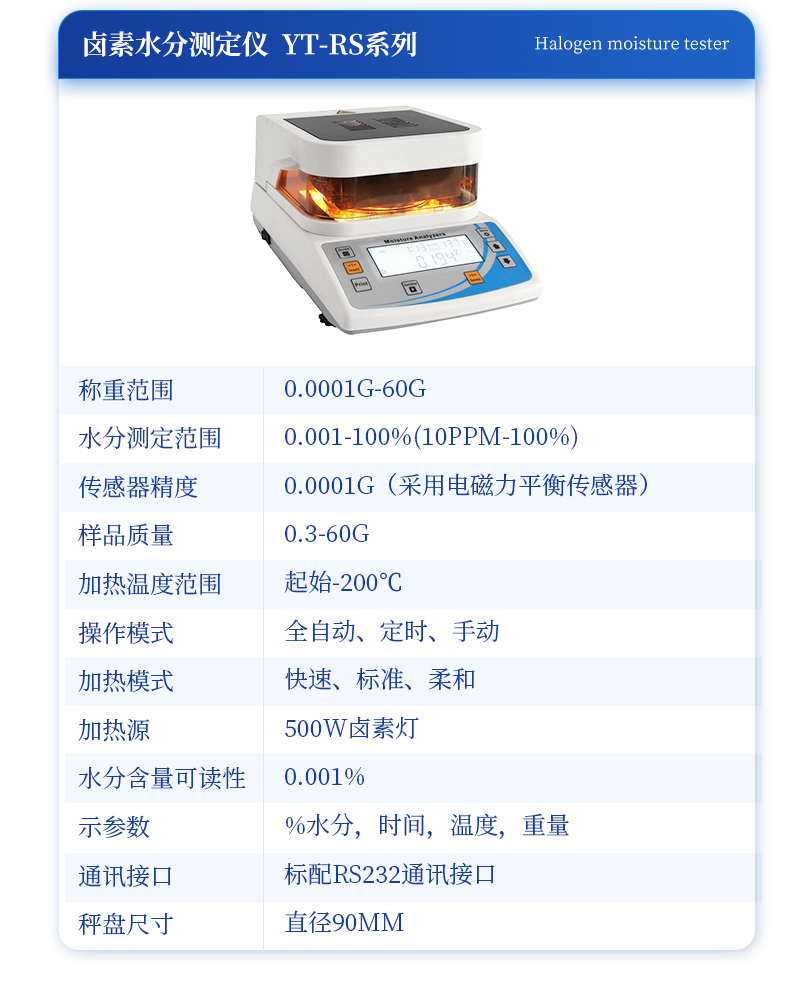 高精度鹵素水分儀 YT-RS100D 產品詳情: