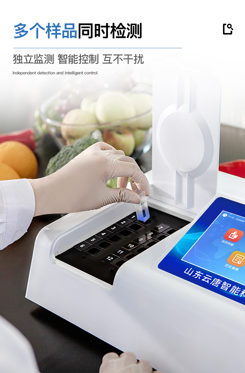 可快速檢測各類食品中的亞硝酸鹽、二氧化硫、甲醛、吊白塊、雙氧水、硼砂、農藥殘留、乳及乳制品中蛋白質、硝酸鹽、重金屬鉛的含量,儀器預留其他項目檢測程序和端口,根據日后需求可方便的自主增加檢測項目。