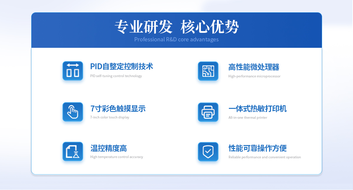 | ★顯示器:5寸彩色觸摸顯示器 | ★打印機:一體式熱敏打印機 | ★控溫范圍:0-100℃ | ★控制精度:±0.05 ℃ | ★加熱功率:1800W | ★加冷卻介質:水或乙醇 | ★冷浴孔數:2孔 | ★電 源:AC220V±10% | ★頻 率:50Hz±2.5Hz |