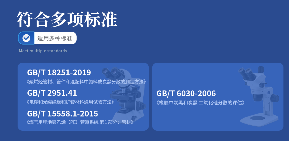 | GB/T 18251-2019 聚烯烴管材、管件和混配料中顏料或炭黑分散的測定方法 | GB/T 2951.41 電纜和光纜絕緣和護套材料通用試驗方法 | GB/T 15558.1-2015 燃氣用埋地聚乙烯(PE)管道系統(tǒng) 第 1 部分:管材 |