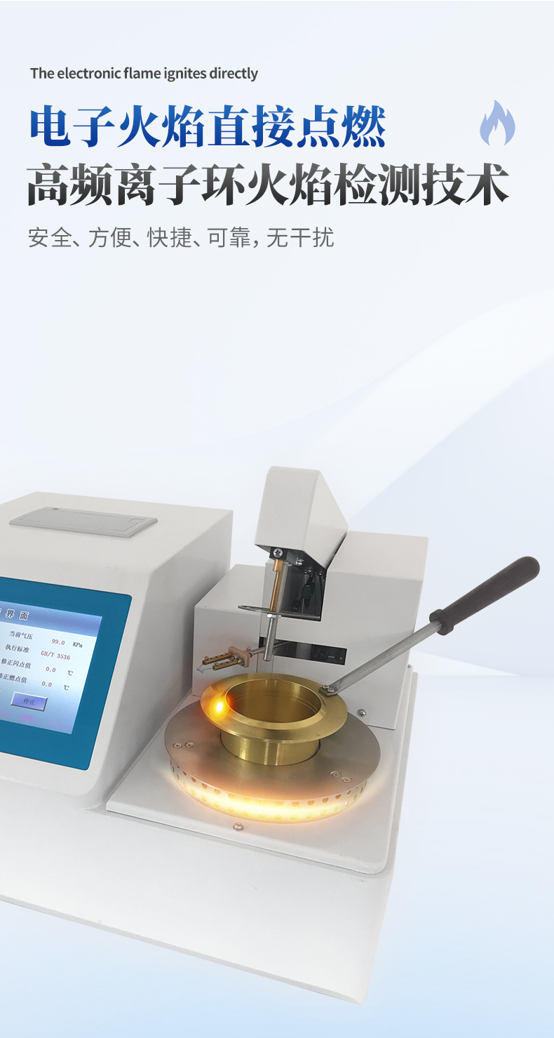 6.閃火檢測采用高頻離子環(huán)火焰檢測技術(shù),使試樣瞬間閃火快速準(zhǔn)確捕獲,避免了誤檢與漏檢。