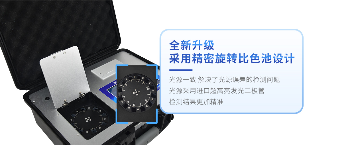 *儀器采用精密旋轉比色池設計,使用光源一致,可以解決各通道間由于光源誤差帶來的檢測結果誤差問題,檢測結果更加精準。