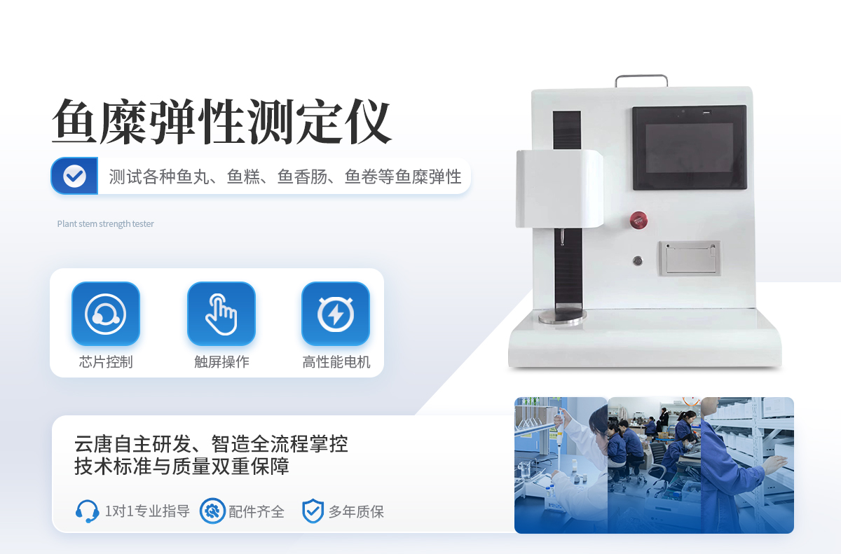 魚糜彈性測定儀是適用于各種魚丸、魚糕、魚香腸、魚卷等魚糜彈性的測試儀器。該機也叫質(zhì)構(gòu)儀,魚糜物性測試儀,魚糜凝膠強度測試儀 魚糜系以魚肉為原料,將魚肉粉碎,加食鹽、副原料等進行擂潰,成粘稠的魚肉糊再成型后加熱,變成具有彈性的凝膠體, 魚糜彈性對一定形狀和尺寸魚糜制品的進行抗拉伸、抗彎曲和抗剪切試驗,衡量魚糜質(zhì)量的一項重要指標(biāo)。 魚糜彈性測定儀滿足國家標(biāo)準(zhǔn)《GBT36187-2018冷凍魚糜凝膠強度測定》